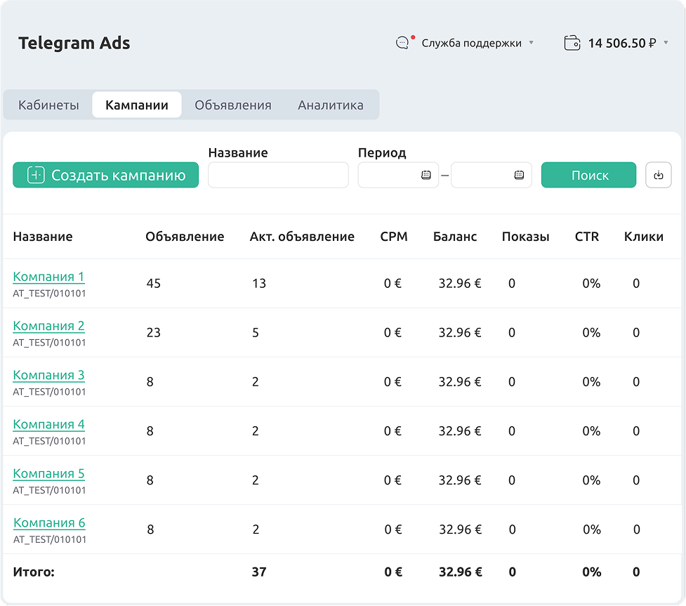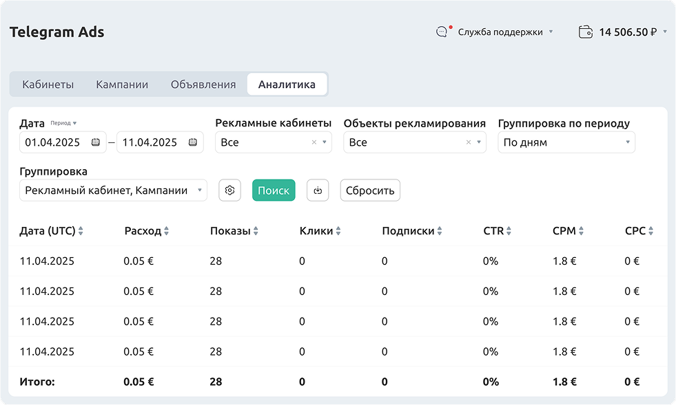 Разработали удобный личный кабинет с нужными инструментами для эффективной работы с Telegram Ads