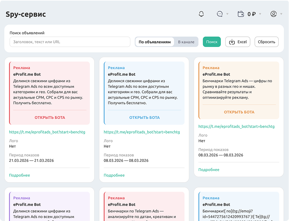 Кейсы eProfit.me по Telegram Ads